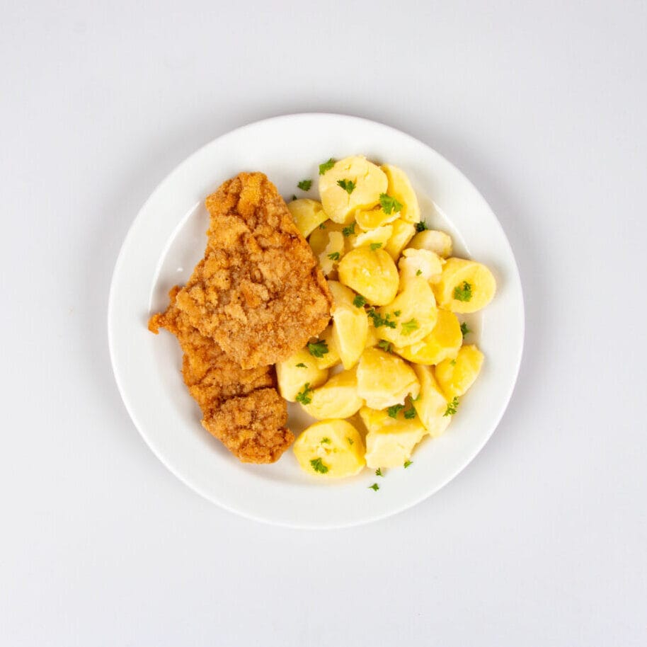 Brambory 60 %, kuřecí prsa 20 %, strouhanka 6 %, olej slunečnicový 6 %, vejce 2 %, mouka pšeničná 2 %, máslo 2 %, sůl