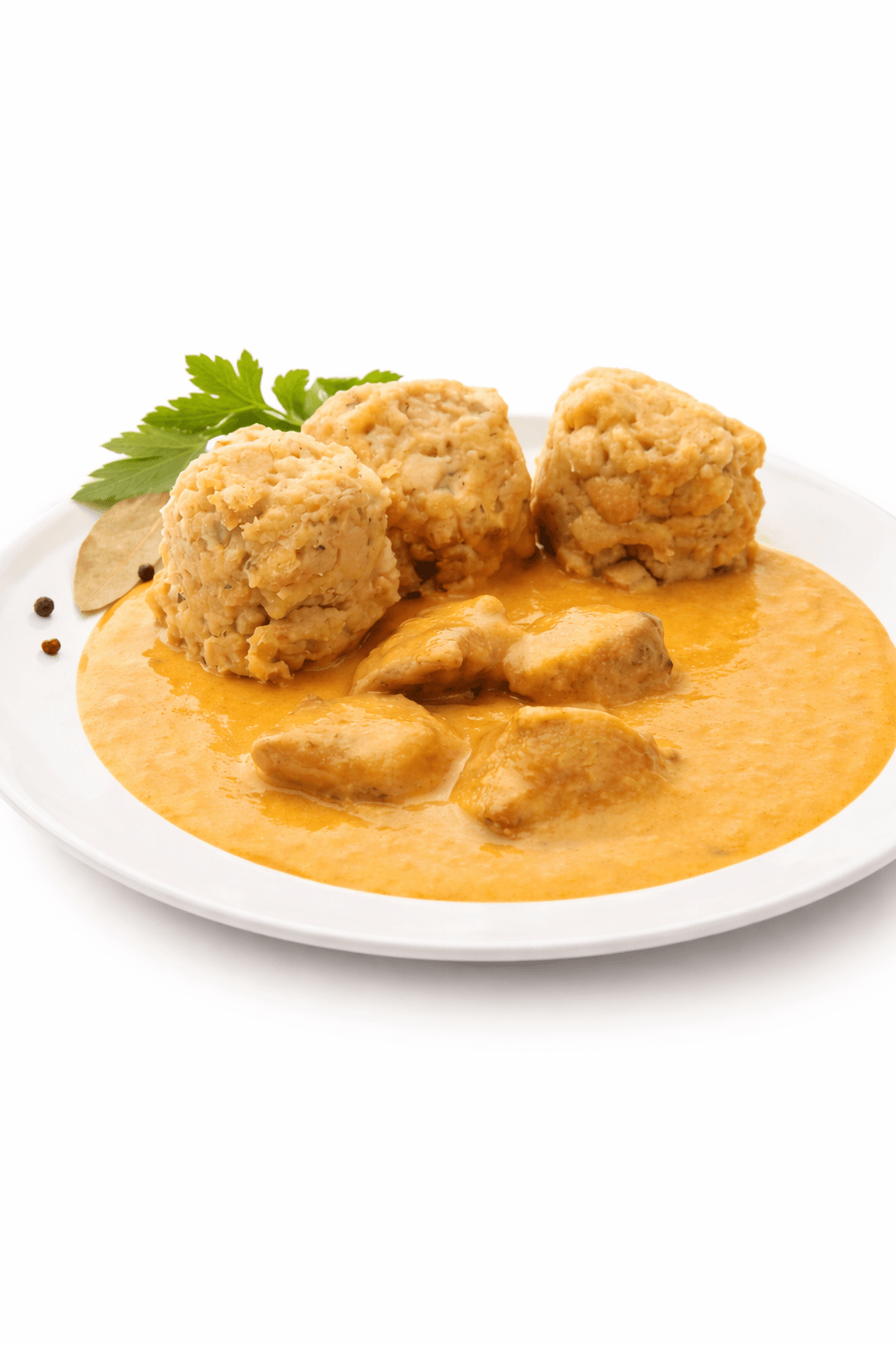 Žemlový knedlík 45 % (PŠENIČNÁ mouka, pitná voda, VEJCE, droždí, jedlá sůl kamenná, jodičnan draselný), vepřová plec 19 %, kořenová zelenina (mrkev, CELER, petržel) 9 %, smetana 7 %, cibule, cukr, olej, sůl (jedlá sůl kamenná, jodičnan draselný), voda, plnotučná HOŘČICE (voda, HOŘČIČNÉ semeno, ocet kvasný lihový, cukr, kurkuma), citrónová šťáva, látky zvýrazňující chuť a vůni (glutaman sodný, 5′-ribonukleotidy sodné), ocet kvasný vinný, dextróza, kvasničný extrakt, maltodextrin, palmový tuk, slunečnicový olej, směs koření, barviva (amoniak-sulfitový karamel, riboflavin).