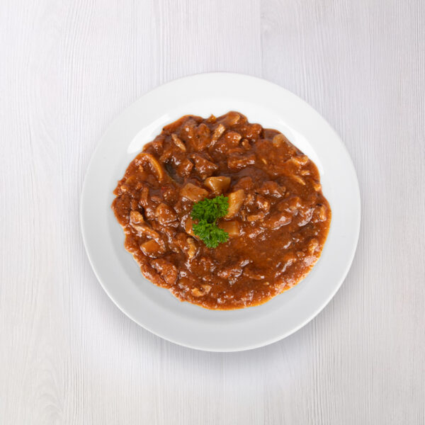 Trvanlivost: až 45 dníSkladování: do 6 °C500 gHotová jídla z masa/Plná porce/Plné porce hotových jídel/Trvanlivá chlazená hlavní jídla