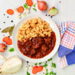 Kousky hovězího masa dušené v jemné smetanové omáčce z kořenové… | 105,00 Kč | 46 | Max: 46 Min: 1 Step: 1 | |||